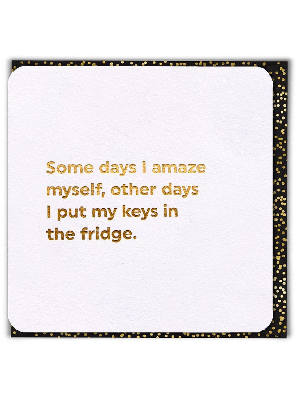Birthday Card Amaze Myself - QU008 £2.95 Add to Wish List Description Reviews This lovely quality card features an embossed print and spot UV glossy finish Dimensions: 150 x 150mm and blank inside for your own message Printed in the UK on sustainably sourced FSC accredited board Reviews Write a customer review and share your thoughts with other customers. Be the first to review this product. You will earn 2 points which is the equivalent of £0.02