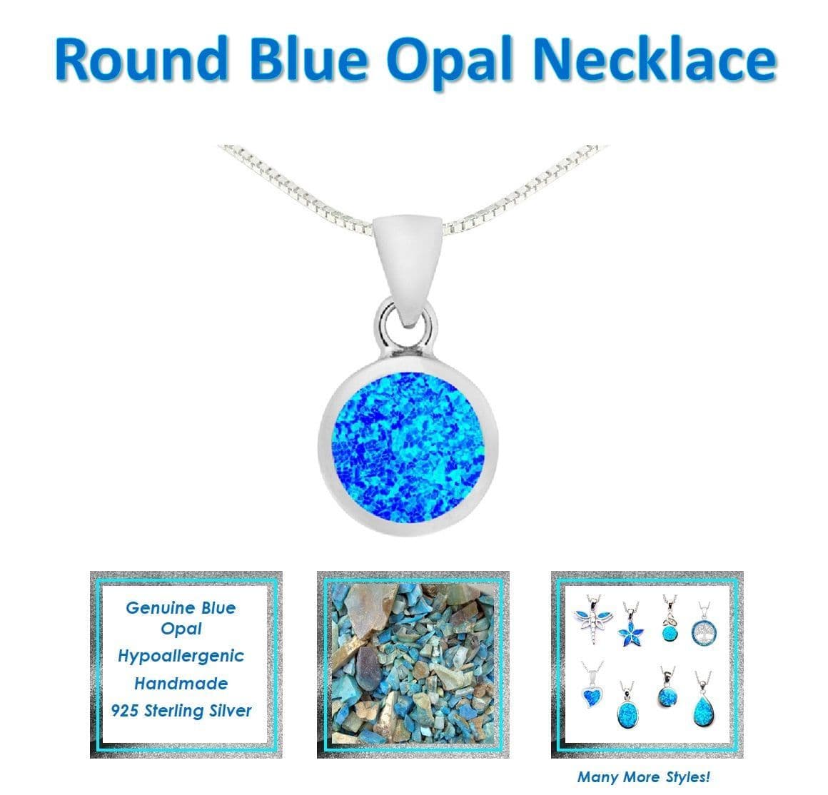 A genuine Blue Opal gemstone necklace encased with 925 Sterling Silver - all handmade by artisans in India.